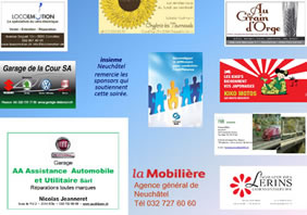 insieme Neuchâtel remercie infiniment les entreprises qui ont soutenus notre souper de soutien 2016 : Au Grain d'Orge, rue des Moulins 11 à Neuchâtel / Onglerie Les Tournesols, Miss T'Hair coiffure, Grand-Rue 25, 2054 Chézard-St-Martin / KIKI MOTOS, Ch. Mon-Loisirs 6, 2208 Les Hauts-Geneveys / Garage de la Cour, rue des Uttins 43, 2034 Peseux / LocoEmotion, Av. Soguel 10C, 2035 Corcelles / Domaine des Lerins, Grand-Rue 58, 2036 Cormondrèche / La Mobilière Assurance, Agence générale de Neuchâtel, rue de la Treille 9, 2000 Neuchâtel / Garage AA Assistance Automobile et Utilitaire, Sous-le-Pré 2, 2014 Bôle / FMR Productions, Société 6, 2013 Colombier.